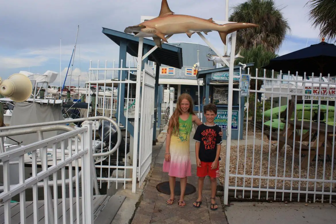 Los geht die Fahrt in die Marco Bay. Wir sehen erst einmal zahlreiche Vögel: Kormorane, Reiher, Pelikane und Seeadler. Und wenige Minuten später tauch die erste Delfinflosse vor uns auf. Die Nachwuchs-Forscher sind begeistert. Es dauert nicht lange, da hat unser Sohn den Delfin im Buch gefunden. Was für ein Erfolgserlebnis! Doch wir können uns nicht auf den gerade erworbenen Lorbeeren ausruhen. Denn etwa 100 Meter entfernt entdecken wir wieder Delfine. Dieses Mal ist es eine Gruppe mit einem kleinen Baby. Wir schaffen es, noch etwas näher heranzukommen, doch für das bloße Auge ist es nicht einfach, die Flossen so genau zu sehen, dass wir sie mit den Bildern vergleichen können. Kent weiß wahrscheinlich längst, wie sie heißen, aber er macht erst einmal mit seiner Kamera ein Foto und druckt es direkt an Bord aus (es lebe der Zoom!). Mit dem Foto können die Kinder schnell herausfinden, um welche Familie es sich handelt. Das Baby ist erst wenige Wochen alt und hat sichtlich Spaß mit seinen Artgenossen zu spielen. So ein friedlicher Anblick – da könnte man stundenlang zuschauen.