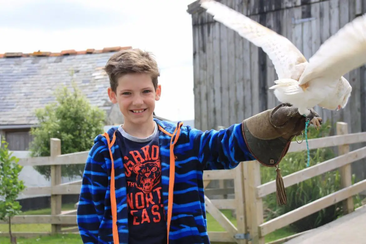 Nachdem wir immer noch alle im Harry Potter Fieber sind, war natürlich die Begegnung mit den Eulen einer der Höhepunkte für uns. „Schau mal, die weiße Eule“, flüstert mein Sohn. „Die sieht aus wie Hedwig!“ – damit war für ihn das Eis gebrochen und er meldete sich als erster, als Gary fragte, wer denn die Eule mal auf dem Arm halten möchte. „Das war toll! Sie ist so leicht – und so weich!“ – erzählte er später begeistert.