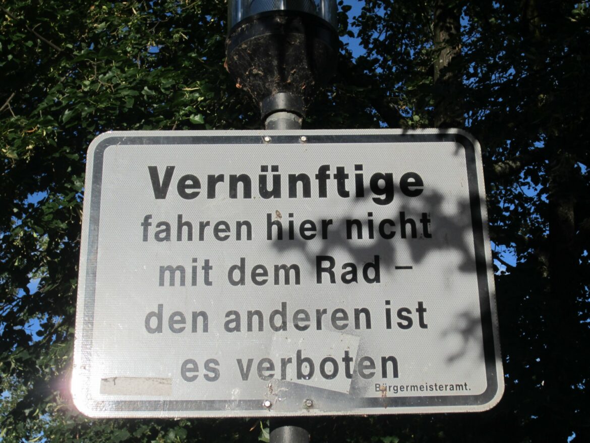 Mit humorvollen Verkehrsschildern versucht man in Friedrichshafen die Radfahrer auf die richtige Bahn zu führen. Und wer’s höflich nicht versteht – der braucht dann einfach klare Regeln!