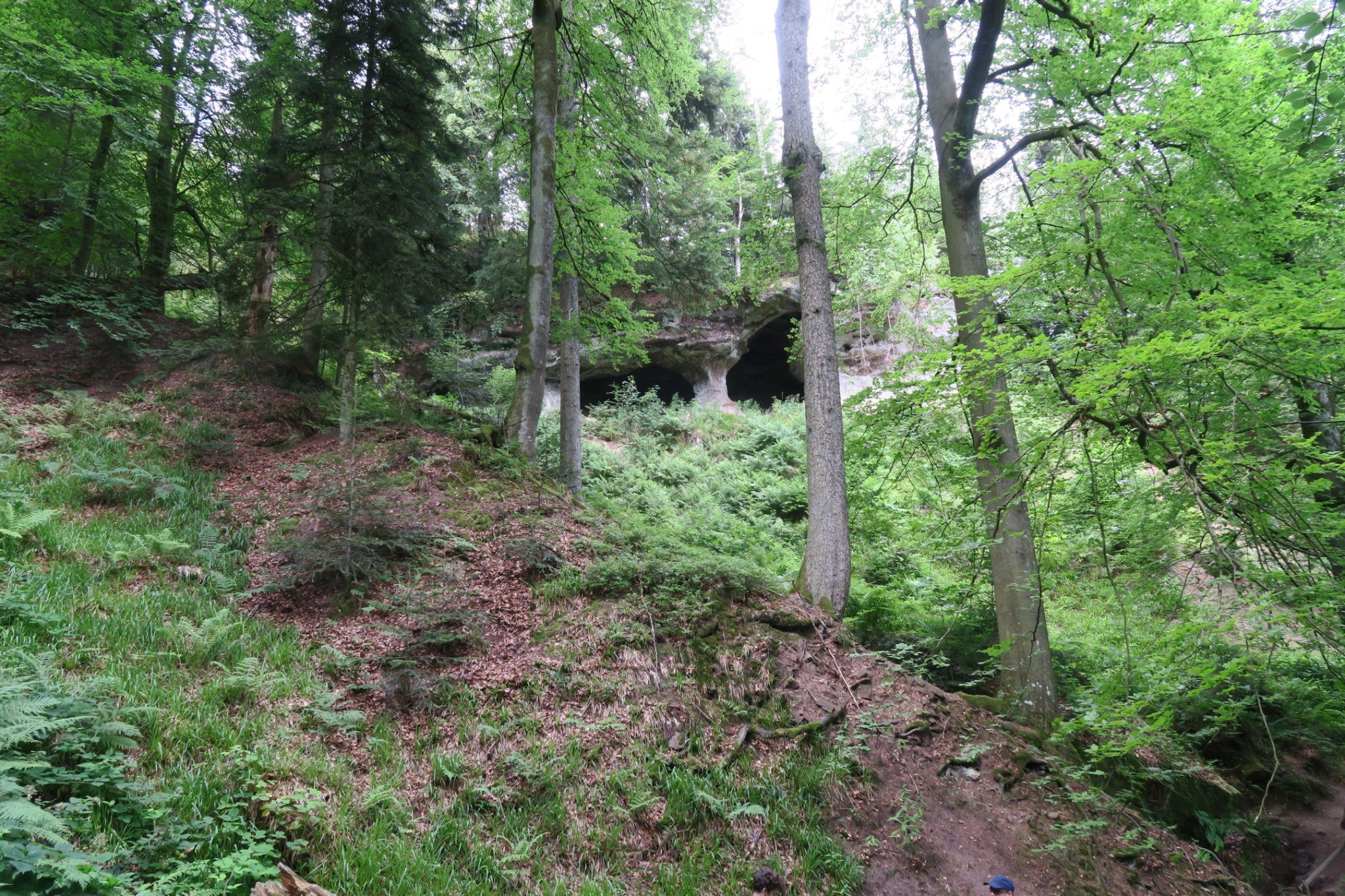 Über schmale Pfade führt die Wanderung zum Großen Loch und den Teufelslöchern bis zur Teufelsmühle. Unterwegs kommen wir durch mannshohe Farnwälder und dichten Wald, über Wiesenwege und Steinpfade. Der Weg ist wildromantisch und abwechslungsreich – aber auch schweißtreibend. Auf etwa 7 Kilometern überwinden wir 350 Höhenmeter.