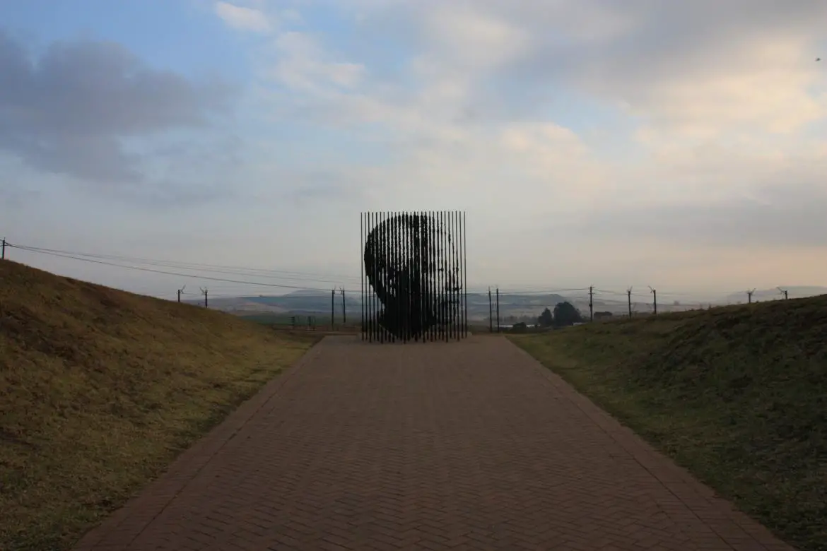 Für uns geht dir Tour am Nachmittag weiter zur Mandela Capture Site, die etwa 30 Minuten entfernt liegt. Genau genommen liegt dieses Stück Land mitten im Nirgendwo – doch dies ist der Ort, an dem Nelson Mandela am 5. August 1965 gefangen genommen wurde. Ein historischer Moment in der südafrikanischen Geschichte. 50 Jahre später entstand hier die Erinnerungsstätte mit ihrer weltberühmten Skulptur. 50 Metallsäulen, ragen hier, auf einer rechteckigen Fläche, zwischen 6,5 und 9 Metern hoch in den Himmel. Nur aus einem ganz bestimmten Winkel betrachtet, lassen sie das Gesicht von Nelson Mandela erkennen.