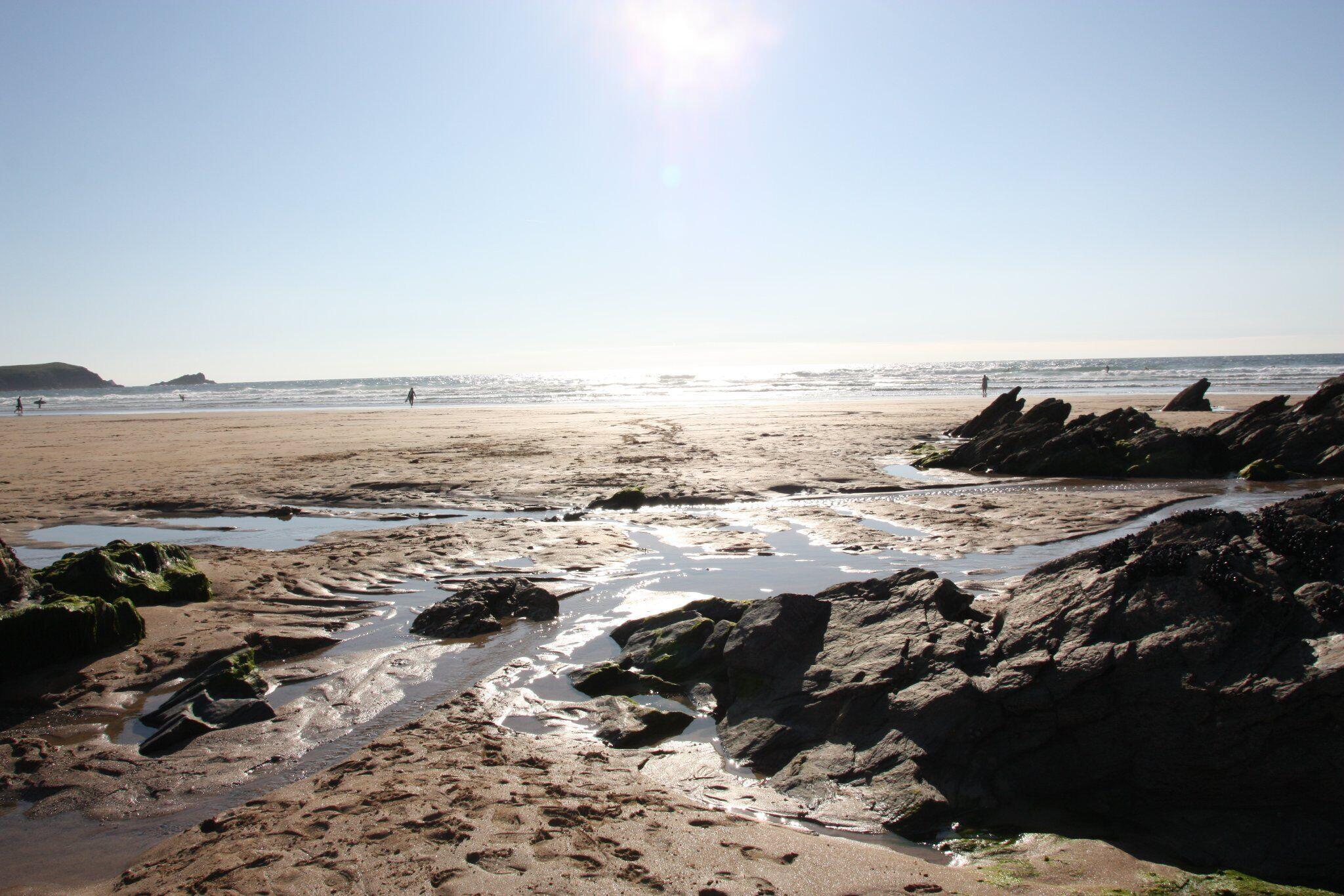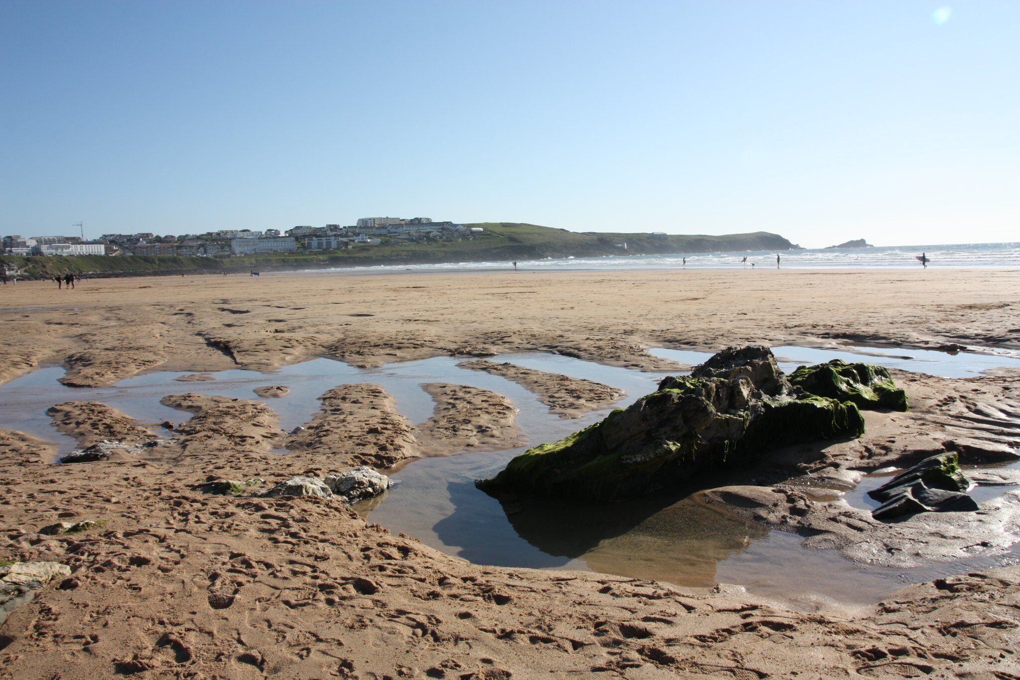 Der Tag empfängt uns mit strahlendem Sonnenschein. Nach dem Frühstück im Hotel (das wie immer in England sehr reichhaltig ausfiel) gehen wir hinunter zum Fistral Beach. Es herrscht Ebbe und statt Surfern kann man fröhlich im Sand tobende Hunde beobachten. Der Strand ist riesig, unterhalb des Hotels gibt es mehrere Felsentümpel die man nach Meeresbewohnern untersuchen kann (Rock Pooling). Der Stand ist nicht nur bei Surfern, sondern auch bei Familien bekannt und ein idealer Ort zum Surfen lernen. Am Strand gibt es mehrere Restaurants, eine Surfschule und einen Surfverleih. Seit neuestem hat auch Sternekoch Rick Stein eine Dependence hier. Ein „Fast Food“-Restaurant in dem es Fish & Chips sowie asiatische Küche aus dem Wok gibt. Das Essen ist lecker – aber nicht mega außergewöhlich. Dafür sind die Preise fair und das Personal sehr freundlich. Von der Terrasse aus kann man die Surfer beobachten und sich den Wind um die Nase wehen lassen. Vor allem aber, kann man am Abend hier den Sonnenuntergang genießen!