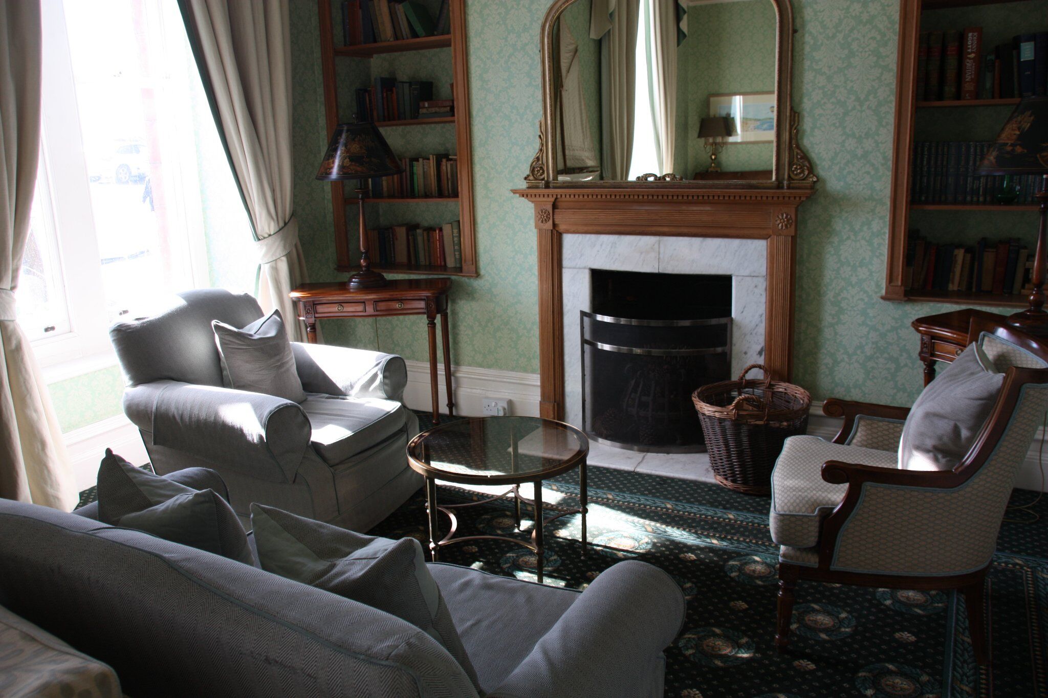 Durch eine kleine, hölzerne, alte und quietschende Drehtür betreten wir das altehrwürdige Gebäude. Wie schon vermutet, wirkt es auch Innen sehr behaglich und gemütlich. Die Räume sind in diversen Rot- und Naturtönen gehalten, kleine Sitzgruppen schmiegen sich um den offenen Kamin und an die riesigen Fensterfronten, die einen fantastischen Blick auf das Meer und den Strand bieten. An der Rezeption werden wir auf deutsch begrüßt – zum ersten Mal während unserer Cornwall-Reisen. Wir erfahren, dass es im Hotel einige deutsche Mitarbeiter gibt – erst später wird uns klar, dass wir uns mitten in der Rosamunde-Pilcher-Welt befinden, die entsprechend viele deutsche Gäste anzieht.