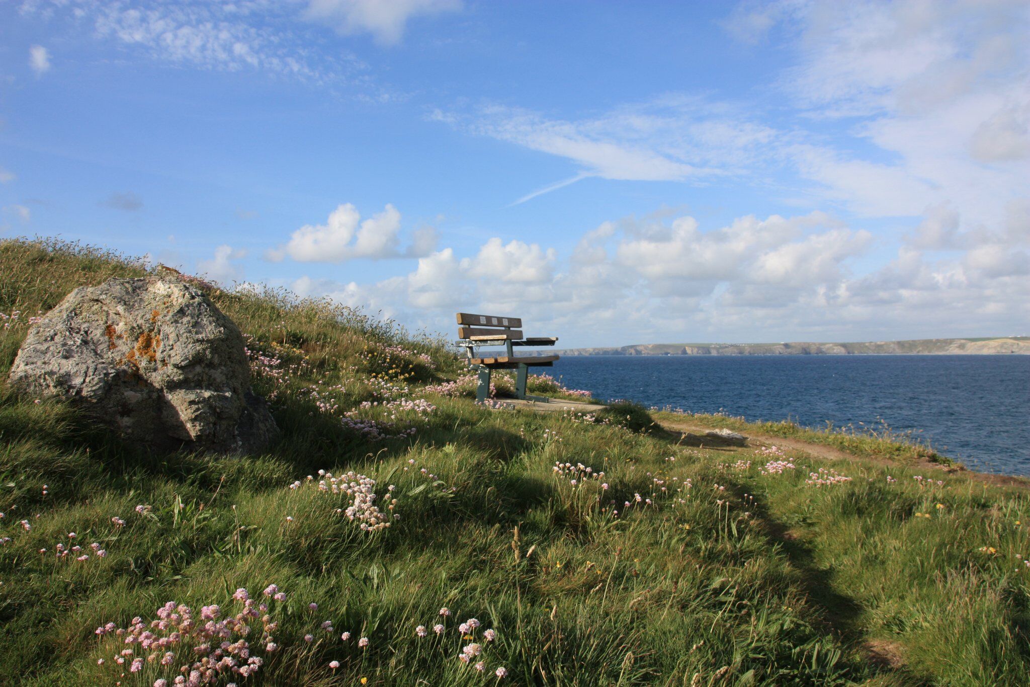 Wir gehen des Coast Path weiter entlang Richtung Norden auf die Landzunge vor dem Hotel. Auch hier wundern wir uns, wie einsam es ist – und das obwohl in England zu dieser Zeit Half-Term-Ferien sind. Der Coast Path ist hier sehr schmal und verwinkelt, rosa Blümchen säumen den Weg zu beiden Seiten – ein echter Feenweg, wie wir finden. Etwas weiter treffen wir auf ein paar Taucher, die sich gerade für einen Tauchgang bereit machen. Das macht mich neugierig, denn wenn man sich bei einer Wassertemperatur von gerade mal 10 Grad in die Fluten wagt, muss es doch etwas ziemlich besonderes zu sehen geben. „Oh ja, die Sicht ist fantastisch, das Wasser ist sehr klar. Wir sehen hier viele Fische, Quallen, Seesterne – und mit etwas Glück Delfine und Riesenhaie“, erzählt uns der Tauchlehrer. „Zur Zeit kann man hier einige sehr freundliche Robben beobachten, sie sind nicht sehr scheu und wir können relativ nahe an sie heranschwimmen.“ Bei den Temperaturen ist natürlich ein dicker Neoprenanzug Pflicht. Dazu kommt eine Tauchmaske. „Du solltest es ausprobieren – es ist gar nicht so kalt, wie es scheint!“ – ermuntert er mich. Wieder etwas dazu gerlent – Tauchen hatte ich bisher nicht als Freizeitaktivität in Cornwall auf dem Plan. Ich gebe zu, dass ich mich nicht in die Fluten getraut habe. Aber für alle, die es mal ausprobieren wollen, hier der Link zu seiner Tauchschule.